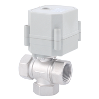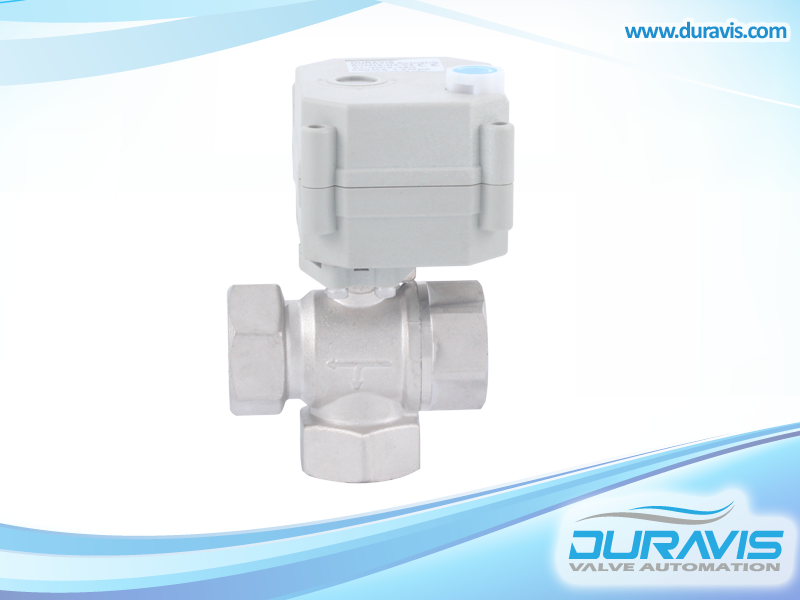3/2 way, T-shaped nickel-plated brass ball valves come in two different model; 4-wire (220V AC), 3-wire (24VAC/DC) control. Used at low-pressure lines for general purpose and an economical flow diversion option. Usage area is generally HVAC.