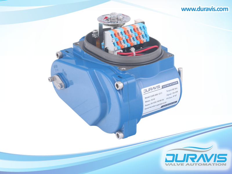 DURAVIS Rotary Electric Actuators are used to control of quarter-turn valves such as ball valves, butterfly valves, rotary plug valves and dampers. DURAVIS 220 VAC 1ph EAR Series electric actuators are presented with diverse torque options from 40Nm up to 3000Nm with different features.