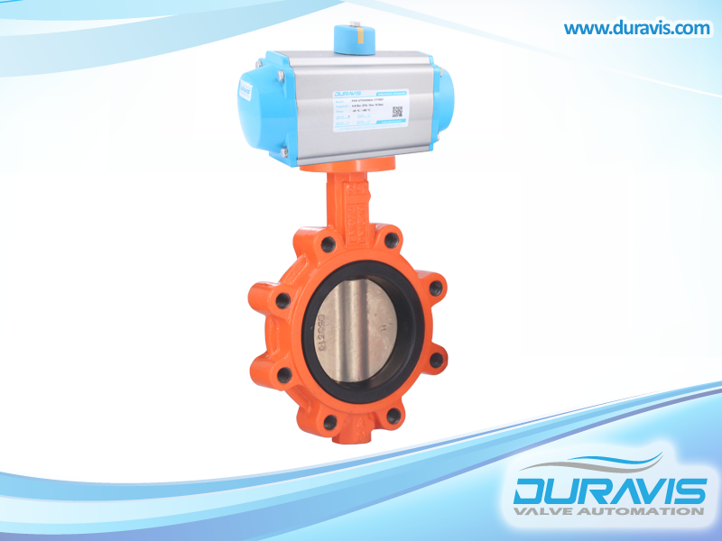 Double and Single Acting DURAVIS pneumatic actuated lug type, EPDM O-ring butterfly valves come up with a wide range of accessory options such as namur solenoid valves, limit switch boxes, positioners. Butterfly valve seal is interchangable (EPDM, NBR, silicone or Viton) in compliance with the type of fluid.